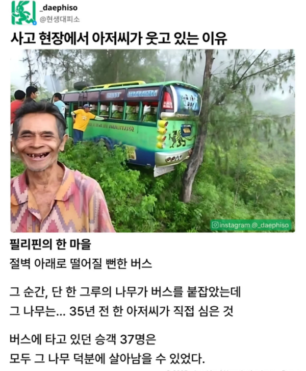 사고현장에서 아저씨가 웃고 있는 이유 작성자 정보 노잼러 작성 작성일 2025.09.29 11:29 컨텐츠 정보 12,176 조회 1 댓글 목록 본문 사고현장에서 아저씨가 웃고 있는 이유 관련자료 서명 i'm 노잼러 댓글 1 야부야부리님의 댓글 야부야부리 작성일 2025.09.29 21:10 미래에서 온 내가 37명을 살릴 수 있는 단 하나의 수.... 미래에서 온 내가 37명을 살릴 수 있는 단 하나의 수.... 로그인한 회원만 댓글 등록이 가능합니다. 목록