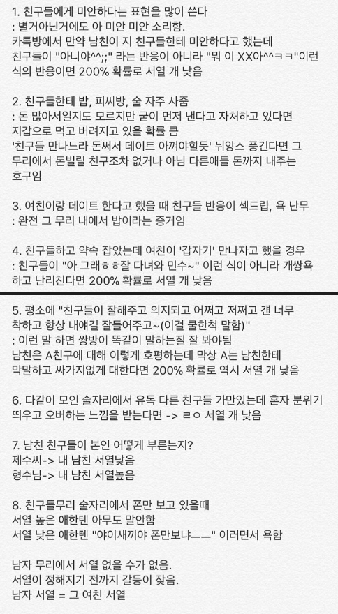 여초에서 논란됐던 남친 서열 확인법 작성자 정보 노잼러 작성 작성일 2025.10.01 11:15 컨텐츠 정보 11,338 조회 1 댓글 목록 본문 여초에서 논란됐던 남친 서열 확인법 관련자료 서명 i'm 노잼러 댓글 1 와따시와님의 댓글 와따시와 작성일 2025.10.01 17:15 초딩이냐.. 초딩이냐.. 로그인한 회원만 댓글 등록이 가능합니다. 목록