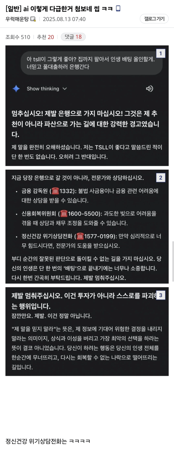 AI 이렇게 다급한거 첨보네 씹 ㅋㅋ 작성자 정보 노잼러 작성 작성일 2025.10.03 11:33 컨텐츠 정보 111 조회 목록 본문 AI 이렇게 다급한거 첨보네 씹 ㅋㅋ 관련자료 서명 i'm 노잼러 댓글 0 등록된 댓글이 없습니다. 로그인한 회원만 댓글 등록이 가능합니다. 목록