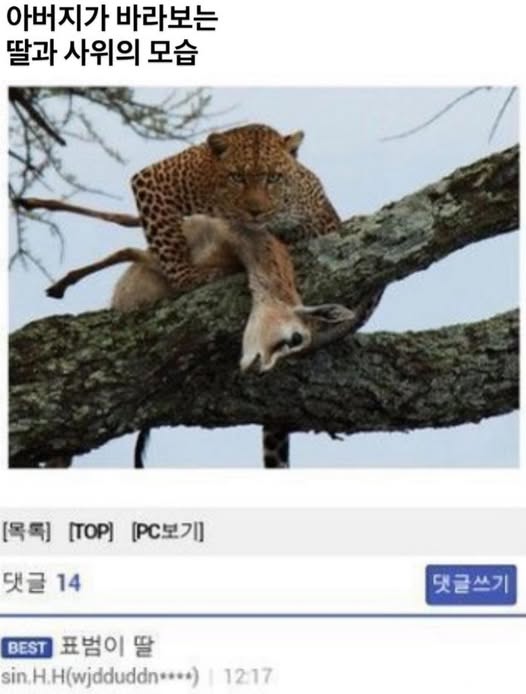 딸이 어디서 사위를 사냥해왔다 작성자 정보 노잼러 작성 작성일 2025.10.06 11:21 컨텐츠 정보 10,210 조회 1 댓글 목록 본문 딸이 어디서 사위를 사냥해왔다 관련자료 서명 i'm 노잼러 댓글 1 피부염통키님의 댓글 피부염통키 작성일 10.06 13:23 개웃기네 ㅋㅋ 개웃기네 ㅋㅋ 로그인한 회원만 댓글 등록이 가능합니다. 목록
