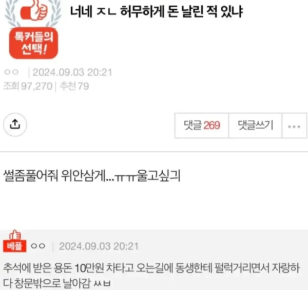 허무하게 돈날린 경험 작성자 정보 노잼러 작성 작성일 2025.10.08 11:56 컨텐츠 정보 9,558 조회 1 댓글 목록 본문 난 로맨스 스캠당해서 100만원 날림 관련자료 서명 i'm 노잼러 댓글 1 똥방구님의 댓글 똥방구 작성일 10.08 14:47 나이사사사삿사 나이사사사삿사 로그인한 회원만 댓글 등록이 가능합니다. 목록