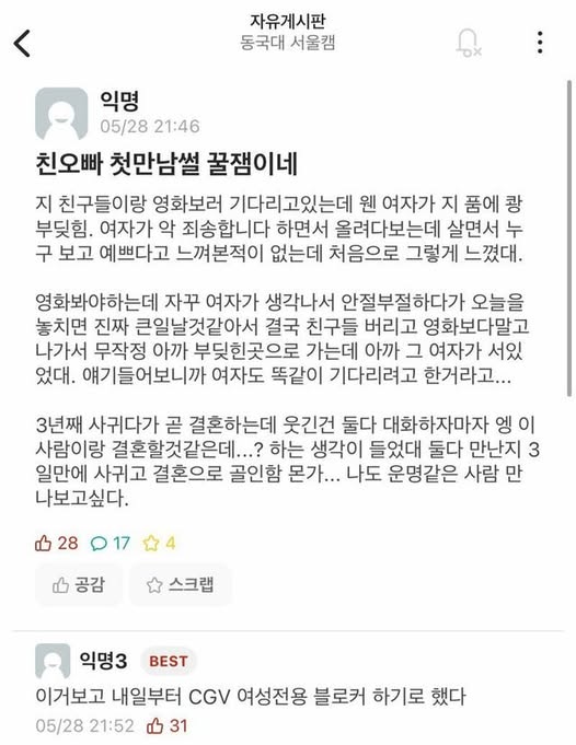 두구두근 친오빠 첫만남 썰 작성자 정보 노잼러 작성 작성일 2025.10.10 11:57 컨텐츠 정보 429 조회 목록 본문 두구두근 친오빠 첫만남 썰 관련자료 서명 i'm 노잼러 댓글 0 등록된 댓글이 없습니다. 로그인한 회원만 댓글 등록이 가능합니다. 목록