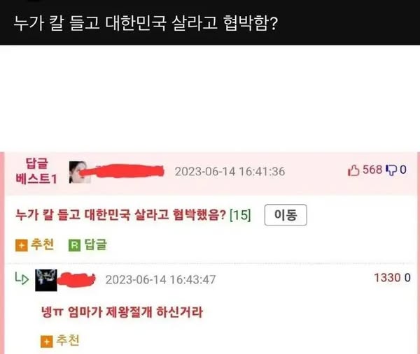 누가 칼들고 대한민국 살라고 협박함? 작성자 정보 노잼러 작성 작성일 2025.10.13 11:25 컨텐츠 정보 132 조회 목록 본문 누가 칼들고 대한민국 살라고 협박함? 관련자료 서명 i'm 노잼러 댓글 0 등록된 댓글이 없습니다. 로그인한 회원만 댓글 등록이 가능합니다. 목록