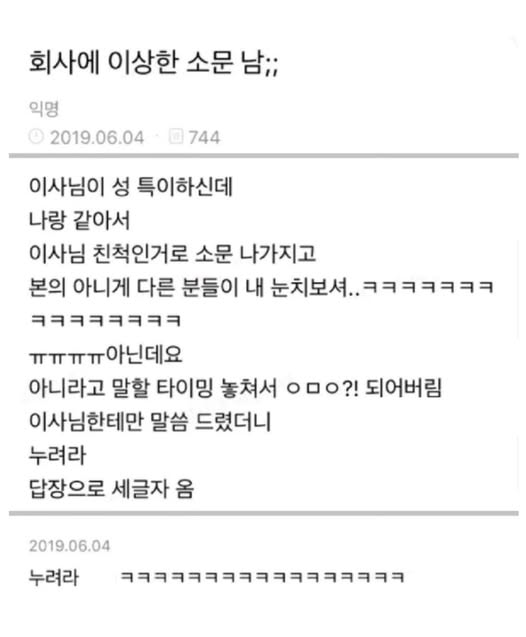 회사에 이상한 소문이 난 신입직원 작성자 정보 노잼러 작성 작성일 2025.10.15 10:52 컨텐츠 정보 305 조회 목록 본문 회사에 이상한 소문이 난 신입직원 관련자료 서명 i'm 노잼러 댓글 0 등록된 댓글이 없습니다. 로그인한 회원만 댓글 등록이 가능합니다. 목록