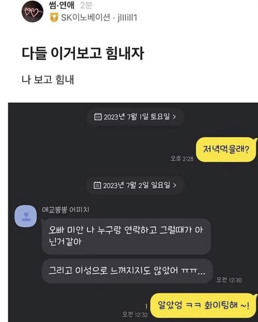 본인 보고 힘내라는 슬픈 사람 작성자 정보 노잼러 작성 작성일 2025.10.16 10:41 컨텐츠 정보 391 조회 목록 본문 본인 보고 힘내라는 슬픈 사람 관련자료 서명 i'm 노잼러 댓글 0 등록된 댓글이 없습니다. 로그인한 회원만 댓글 등록이 가능합니다. 목록