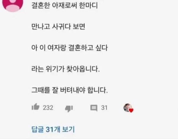 유부남의 짙은 충고 작성자 정보 노잼러 작성 작성일 2025.10.16 10:47 컨텐츠 정보 415 조회 목록 본문 유부남의 짙은 충고 관련자료 서명 i'm 노잼러 댓글 0 등록된 댓글이 없습니다. 로그인한 회원만 댓글 등록이 가능합니다. 목록