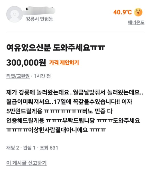 돈 빌려달라는 당근 작성자 정보 노잼러 작성 작성일 2025.10.16 10:51 컨텐츠 정보 404 조회 목록 본문 돈 빌려달라는 당근 관련자료 서명 i'm 노잼러 댓글 0 등록된 댓글이 없습니다. 로그인한 회원만 댓글 등록이 가능합니다. 목록