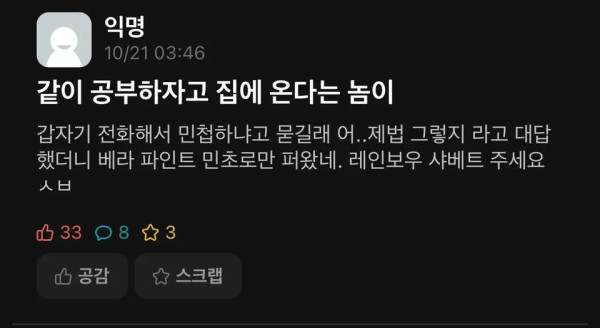 너 민첩하냐? 작성자 정보 노잼러 작성 작성일 2025.10.26 11:12 컨텐츠 정보 5,647 조회 목록 본문 너 민첩하냐? 관련자료 서명 i'm 노잼러 댓글 0 등록된 댓글이 없습니다. 로그인한 회원만 댓글 등록이 가능합니다. 목록