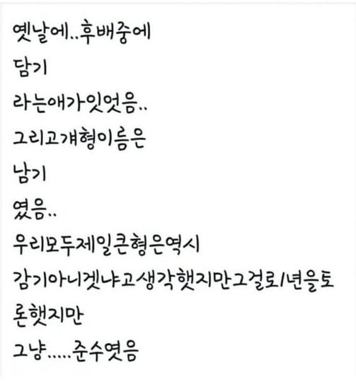 옛날에 담기라는 애가 있었음 작성자 정보 노잼러 작성 작성일 2025.10.31 11:11 컨텐츠 정보 486 조회 목록 본문 옛날에 담기라는 애가 있었음 관련자료 서명 i'm 노잼러 댓글 0 등록된 댓글이 없습니다. 로그인한 회원만 댓글 등록이 가능합니다. 목록