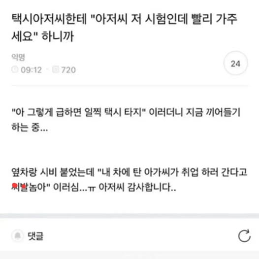 아저씨 저 시험인데 빨리 가주세요 작성자 정보 노잼러 작성 작성일 2025.10.31 11:13 컨텐츠 정보 237 조회 목록 본문 아저씨 저 시험인데 빨리 가주세요 관련자료 서명 i'm 노잼러 댓글 0 등록된 댓글이 없습니다. 로그인한 회원만 댓글 등록이 가능합니다. 목록