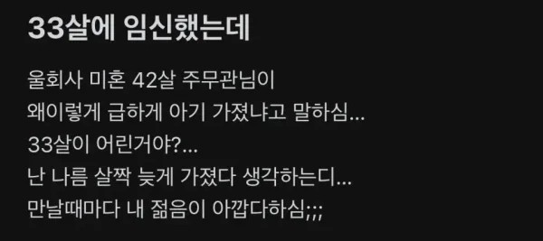 33살 임산부 vs 42살 주무관 작성자 정보 노잼러 작성 작성일 2025.11.05 13:58 컨텐츠 정보 372 조회 목록 본문 33살 임산부 vs 42살 주무관 관련자료 서명 i'm 노잼러 댓글 0 등록된 댓글이 없습니다. 로그인한 회원만 댓글 등록이 가능합니다. 목록