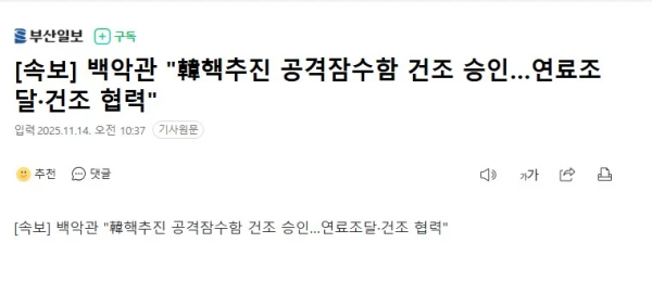 [속보] 백악관 "韓핵추진 공격잠수함 건조 승인…연료조달·건조 협력"