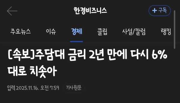 [속보] 주담대 금리 2년만에 다시 6%대로 치솟아 작성자 정보 존버는승리한다 작성 작성일 2025.11.16 10:44 컨텐츠 정보 395 조회 1 댓글 목록 본문 [속보] 주담대 금리 2년만에 다시 6%대로 치솟아 관련자료 댓글 1 간바레간바레님의 댓글 간바레간바레 작성일 10:45 살려줘 살려줘 로그인한 회원만 댓글 등록이 가능합니다. 목록