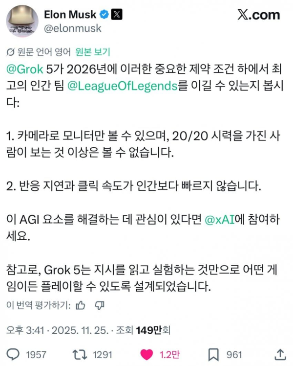 AI, 바둑에 이어 리그오브레전드 게임 노린다 작성자 정보 뚜비두밥두밥밥 작성 작성일 2025.11.25 18:48 컨텐츠 정보 156 조회 1 댓글 목록 본문 우리에겐 대상혁이 있다. 관련자료 댓글 1 오레오레오님의 댓글 오레오레오 작성일 19:18 ??? : "헬퍼요? 연습 잘되고 좋던데" ??? : "헬퍼요? 연습 잘되고 좋던데" 로그인한 회원만 댓글 등록이 가능합니다. 목록