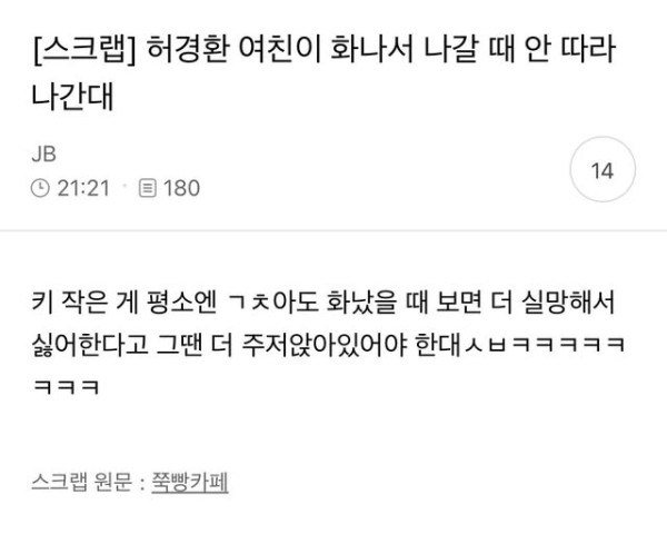 키작남은 여친이 화나도 따라가선 안 되는 이유 작성자 정보 노잼러 작성 작성일 2025.11.27 12:30 컨텐츠 정보 230 조회 목록 본문 키작남은 여친이 화나도 따라가선 안 되는 이유 관련자료 서명 i'm 노잼러 댓글 0 등록된 댓글이 없습니다. 로그인한 회원만 댓글 등록이 가능합니다. 목록