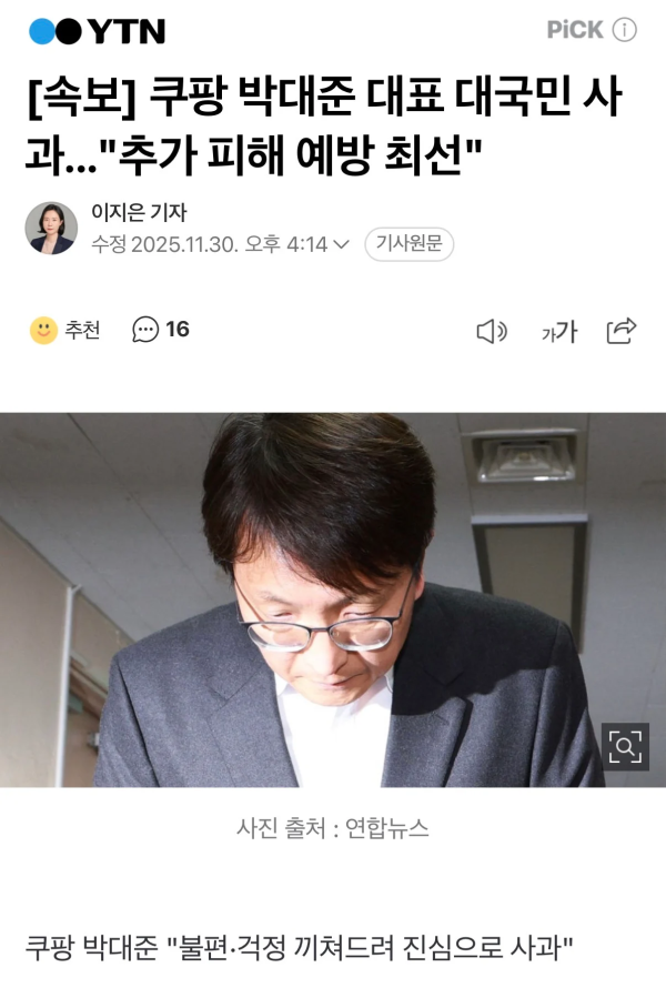 쿠팡 대표 대국민 사과, 추가 피해 예방 최선 작성자 정보 한조장인 작성 작성일 2025.11.30 18:00 컨텐츠 정보 48 조회 목록 본문 아 사과했으니 그만하라고 ㅋㅋㅋㅋ 보상은 알빠노 관련자료 댓글 0 등록된 댓글이 없습니다. 로그인한 회원만 댓글 등록이 가능합니다. 목록