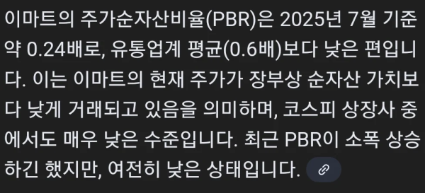 기괴한 국장의 상징과도 같은 종목 작성자 정보 쏘니쏜 작성 작성일 2025.12.14 14:04 컨텐츠 정보 5,502 조회 1 댓글 목록 본문 이마트 저평가 돼있다고 들어갔다가 그대로 돌이 된 사람이 국내외를 가리지 않고 산더미다. 관련자료 댓글 1 제임스님의 댓글 제임스 작성일 12.14 19:24 그 회사 자산을 다 팔면 그 회사를 네번 살 수 있는 회사 그 회사 자산을 다 팔면 그 회사를 네번 살 수 있는 회사 로그인한 회원만 댓글 등록이 가능합니다. 목록