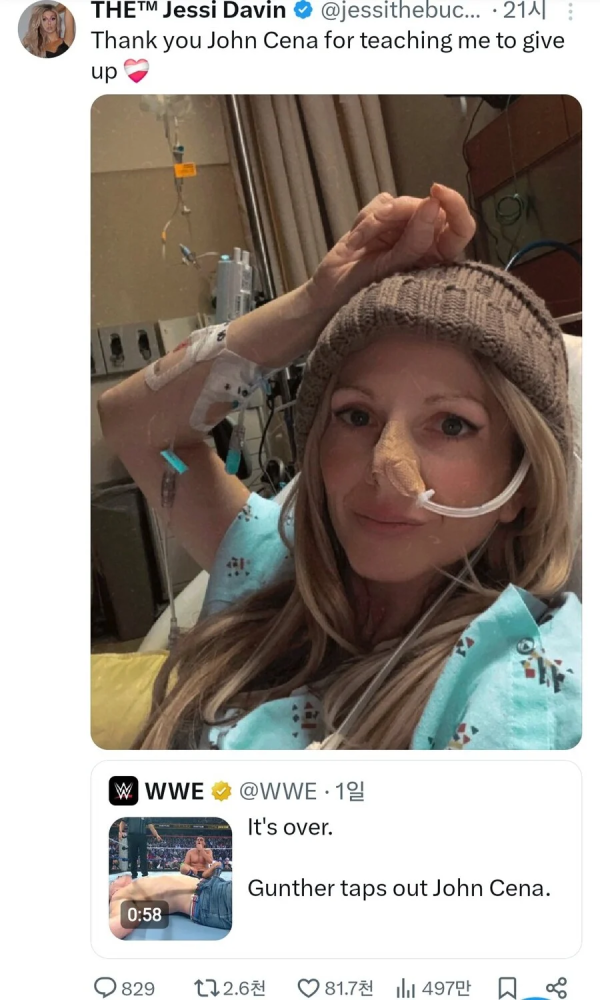 존시나 은퇴경기에 감사를 표한 외국인 작성자 정보 막창 작성 작성일 2025.12.16 12:57 컨텐츠 정보 735 조회 목록 본문 존시나 은퇴경기에 감사를 표한 외국인 관련자료 댓글 0 등록된 댓글이 없습니다. 로그인한 회원만 댓글 등록이 가능합니다. 목록