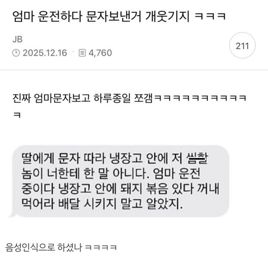 운전중에 급발진 했던 엄마 작성자 정보 GG요 작성 작성일 2025.12.18 12:53 컨텐츠 정보 1,279 조회 목록 본문 운전중에 급발진 했던 엄마 관련자료 댓글 0 등록된 댓글이 없습니다. 로그인한 회원만 댓글 등록이 가능합니다. 목록