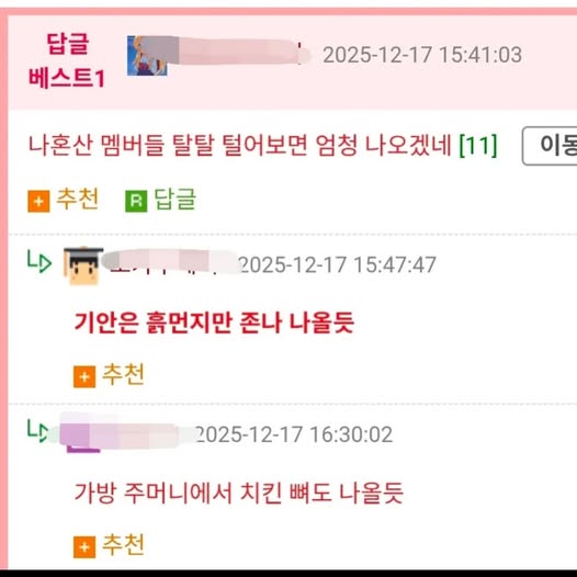 코 푼 물티슈도 나옴 작성자 정보 GG요 작성 작성일 2025.12.18 12:54 컨텐츠 정보 1,260 조회 목록 본문 코 푼 물티슈도 나옴 관련자료 댓글 0 등록된 댓글이 없습니다. 로그인한 회원만 댓글 등록이 가능합니다. 목록