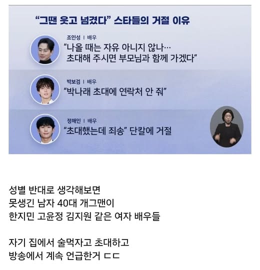 나래바 초대 거절한 남자 연예인들 작성자 정보 GG요 작성 작성일 2025.12.19 12:46 컨텐츠 정보 1,954 조회 목록 본문 나래바 초대 거절한 남자 연예인들 관련자료 댓글 0 등록된 댓글이 없습니다. 로그인한 회원만 댓글 등록이 가능합니다. 목록