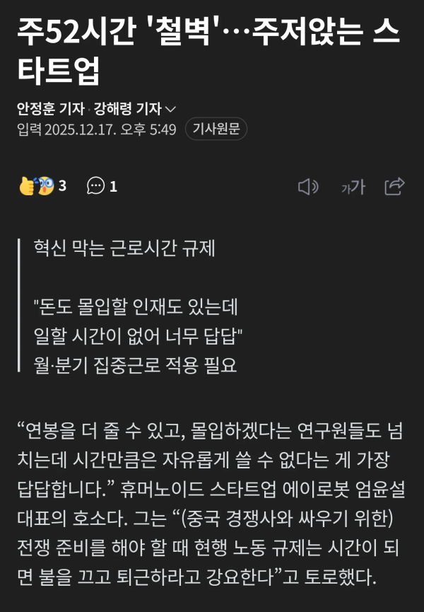 주52시간 철벽... 주저앉는 업계 작성자 정보 시믹현 작성 작성일 2025.12.22 19:46 컨텐츠 정보 363 조회 1 댓글 목록 본문 주52시간 철벽... 주저앉는 업계 관련자료 댓글 1 화살촉님의 댓글 화살촉 작성일 20:07 좆같은 소리좀 그만해 안그래도 업무시간 일등찍는 나라인데.. 좆같은 소리좀 그만해 안그래도 업무시간 일등찍는 나라인데.. 로그인한 회원만 댓글 등록이 가능합니다. 목록