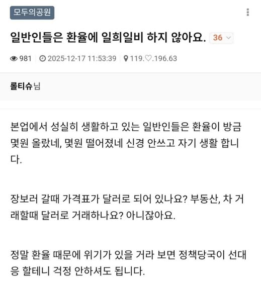 좌파사이트 회원들이 생각하는 환율 작성자 정보 GG요 작성 작성일 2025.12.24 14:48 컨텐츠 정보 9,869 조회 목록 본문 좌파사이트 회원들이 생각하는 환율 관련자료 댓글 0 등록된 댓글이 없습니다. 로그인한 회원만 댓글 등록이 가능합니다. 목록