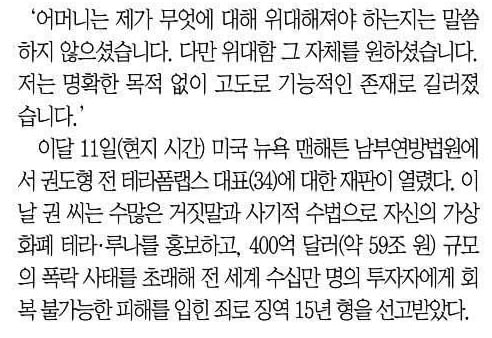 권도형이 미국 판사에게 보낸 편지 작성자 정보 쾌변 작성 작성일 2025.12.27 10:45 컨텐츠 정보 147 조회 목록 본문 권도형이 미국 판사에게 보낸 편지 관련자료 댓글 0 등록된 댓글이 없습니다. 로그인한 회원만 댓글 등록이 가능합니다. 목록