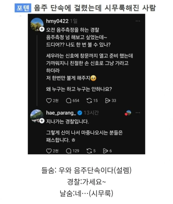 "왜 저는 음주측정안해줘요?" 작성자 정보 1급수미네랄 작성 작성일 2025.12.30 12:50 컨텐츠 정보 41 조회 목록 본문 오토바이탈 때 음주단속걸려서 싱글벙글하면서 장갑벗고 헬멧턱끈 풀고 헬멧벗으려 하니까 그냥 가라더라 관련자료 댓글 0 등록된 댓글이 없습니다. 로그인한 회원만 댓글 등록이 가능합니다. 목록