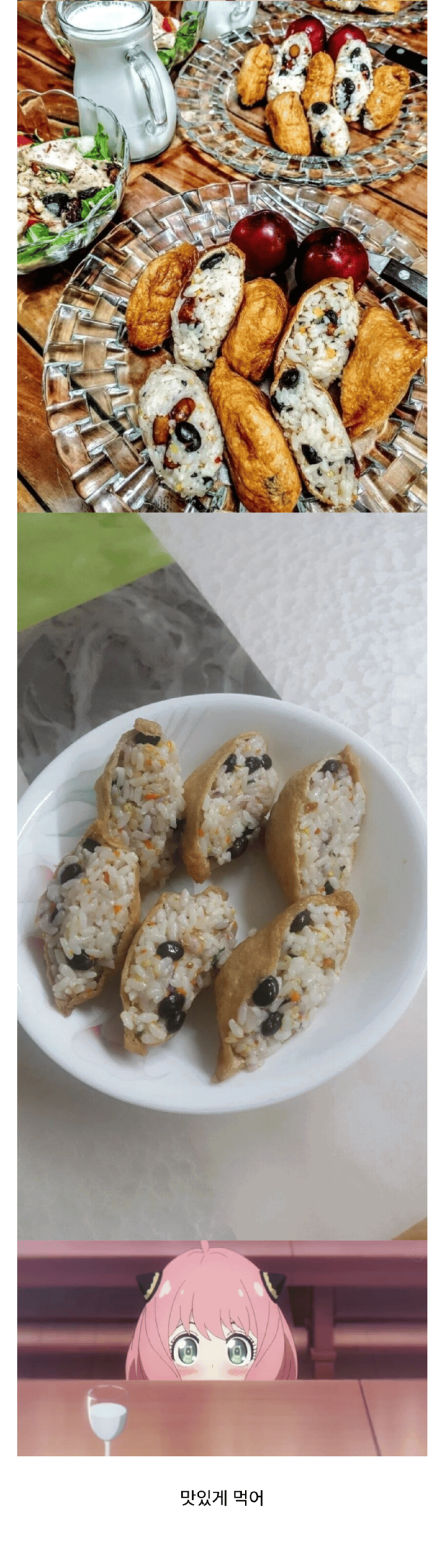 "치치, 아냐가 유부초밥 만들었어" 작성자 정보 이사만루 작성 작성일 2025.12.30 18:40 컨텐츠 정보 203 조회 1 댓글 목록 본문 "치치, 아냐가 유부초밥 만들었어" 관련자료 댓글 1 해리포터님의 댓글 해리포터 작성일 19:29 콩밥을 ? 콩밥을 ? 로그인한 회원만 댓글 등록이 가능합니다. 목록