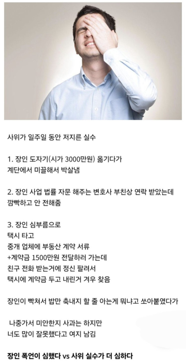 사위한테 밥벌레라고한 장인어른 작성자 정보 초록물고기 작성 작성일 2026.01.02 13:38 컨텐츠 정보 121 조회 목록 본문 사위한테 밥벌레라고한 장인어른 관련자료 댓글 0 등록된 댓글이 없습니다. 로그인한 회원만 댓글 등록이 가능합니다. 목록