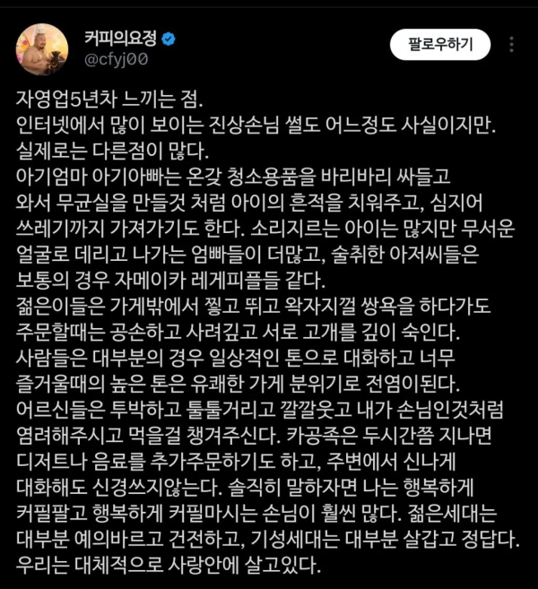 자영업 5년차 의외로 느끼는 거 작성자 정보 만원만 작성 작성일 2026.01.07 11:05 컨텐츠 정보 2,064 조회 목록 본문 자영업 5년차 의외로 느끼는 거 관련자료 댓글 0 등록된 댓글이 없습니다. 로그인한 회원만 댓글 등록이 가능합니다. 목록