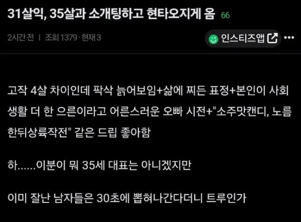 35남과 소개팅하고 현타왔다는 31녀 작성자 정보 GG요 작성 작성일 2026.01.15 12:08 컨텐츠 정보 180 조회 목록 본문 35남과 소개팅하고 현타왔다는 31녀 관련자료 댓글 0 등록된 댓글이 없습니다. 로그인한 회원만 댓글 등록이 가능합니다. 목록