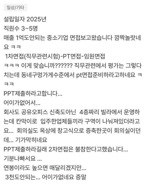 대기업 흉내내는 중소기업이 어이가 없다는 구직자 작성자 정보 GG요 작성 작성일 2026.01.15 12:12 컨텐츠 정보 224 조회 목록 본문 대기업 흉내내는 중소기업이 어이가 없다는 구직자 관련자료 댓글 0 등록된 댓글이 없습니다. 로그인한 회원만 댓글 등록이 가능합니다. 목록