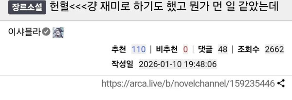 그저 재미로 헌혈했던 장붕이.jpg 작성자 정보 감사합니다 작성 작성일 2026.01.15 17:58 컨텐츠 정보 130 조회 목록 본문 . 관련자료 서명 ㅋㅋ 댓글 0 등록된 댓글이 없습니다. 로그인한 회원만 댓글 등록이 가능합니다. 목록