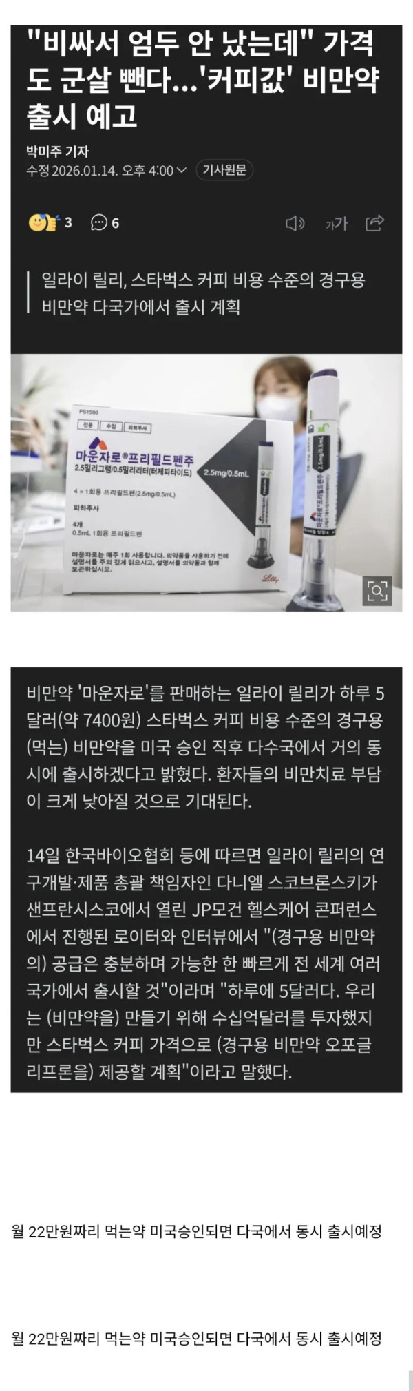 비만약 마운자로 신제품 근황.jpg 작성자 정보 감사합니다 작성 작성일 2026.01.15 17:58 컨텐츠 정보 107 조회 목록 본문 https://n.news.naver.com/article/008/0005304552?ntype=RANKING 관련자료 서명 ㅋㅋ 댓글 0 등록된 댓글이 없습니다. 로그인한 회원만 댓글 등록이 가능합니다. 목록