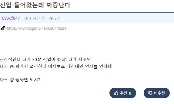 나이 많은 신입 들어왔는데 갈궈도 되냐는 개붕이 작성자 정보 감사합니다 작성 작성일 2026.01.15 18:16 컨텐츠 정보 1,327 조회 목록 본문 관련자료 서명 ㅋㅋ 댓글 0 등록된 댓글이 없습니다. 로그인한 회원만 댓글 등록이 가능합니다. 목록