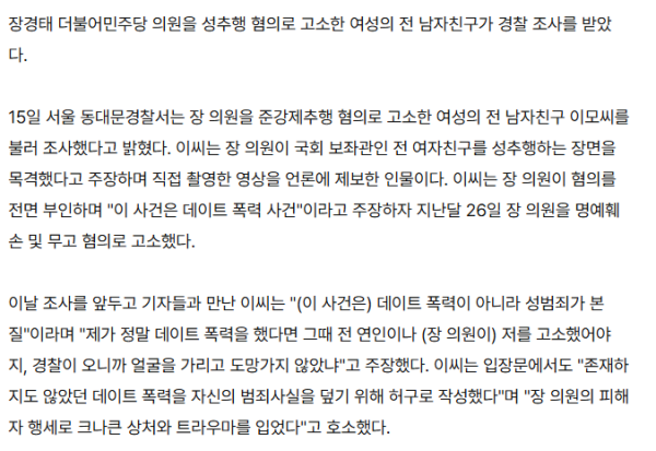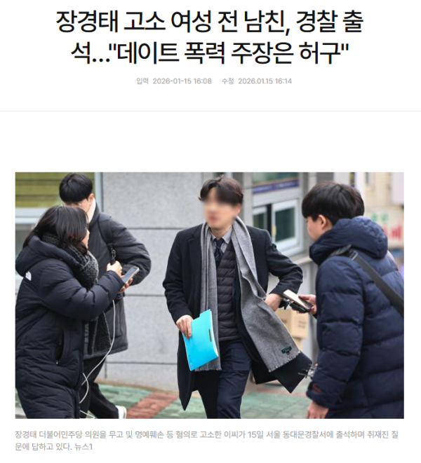 장경태 고소 여성 전 남친, 경찰 출석…"데이트 폭력 주장은 허구" 작성자 정보 감사합니다 작성 작성일 2026.01.15 23:54 컨텐츠 정보 245 조회 목록 본문 https://www.hankookilbo.com/News/Read/A2026011514480000513?did=NA 관련자료 서명 ㅋㅋ 댓글 0 등록된 댓글이 없습니다. 로그인한 회원만 댓글 등록이 가능합니다. 목록