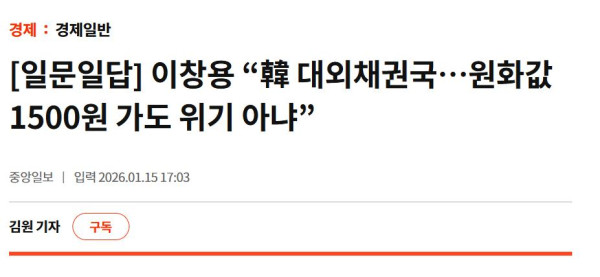 근데 이창용 총재님에게 환율문제 궁금한거 딱 하나 있음 작성자 정보 감사합니다 작성 작성일 2026.01.15 23:58 컨텐츠 정보 443 조회 목록 본문 환율 1500원 가도 위기 아니면 왜 개인투자자들, 기업들 달러 토해내라고 압력넣고해외 정보 공유하는 증권사들 텔레그램 채널 압력넣어서 내리게 만드는거임?저는 잘 모르는데 똑똑하신 분이니까 이유가 있겠죠? 관련자료 서명 ㅋㅋ 댓글 0 등록된 댓글이 없습니다. 로그인한 회원만 댓글 등록이 가능합니다. 목록