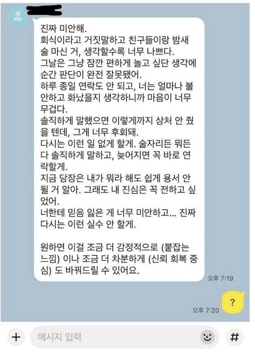 AI가 쓴 듯한 사과문 작성자 정보 GG요 작성 작성일 2026.01.16 12:22 컨텐츠 정보 421 조회 목록 본문 AI가 쓴 듯한 사과문 관련자료 댓글 0 등록된 댓글이 없습니다. 로그인한 회원만 댓글 등록이 가능합니다. 목록