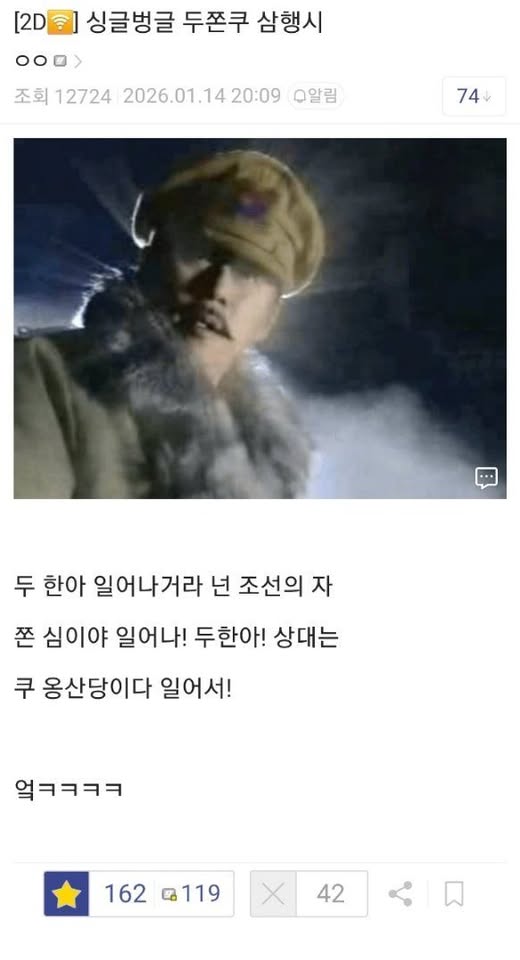 두쫀쿠 삼행시 작성자 정보 GG요 작성 작성일 2026.01.19 12:22 컨텐츠 정보 263 조회 목록 본문 두쫀쿠 삼행시 관련자료 댓글 0 등록된 댓글이 없습니다. 로그인한 회원만 댓글 등록이 가능합니다. 목록