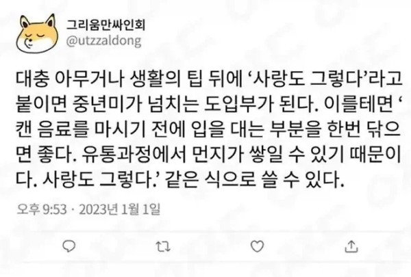 누구나 쉽게 명언 만드는 법 작성자 정보 GG요 작성 작성일 2026.02.04 12:46 컨텐츠 정보 133 조회 목록 본문 누구나 쉽게 명언 만드는 법 관련자료 댓글 0 등록된 댓글이 없습니다. 로그인한 회원만 댓글 등록이 가능합니다. 목록