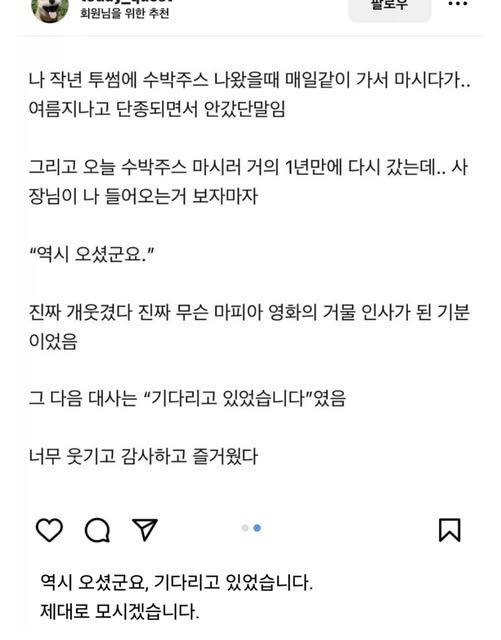 1년만에 오셨군요. 작성자 정보 GG요 작성 작성일 2026.02.05 12:32 컨텐츠 정보 113 조회 목록 본문 1년만에 오셨군요. 관련자료 댓글 0 등록된 댓글이 없습니다. 로그인한 회원만 댓글 등록이 가능합니다. 목록