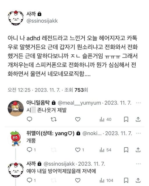 adhd녀가 남친이랑 이별 전화하면서 한 것 작성자 정보 GG요 작성 작성일 2026.02.07 12:41 컨텐츠 정보 407 조회 목록 본문 adhd녀가 남친이랑 이별 전화하면서 한 것 관련자료 댓글 0 등록된 댓글이 없습니다. 로그인한 회원만 댓글 등록이 가능합니다. 목록