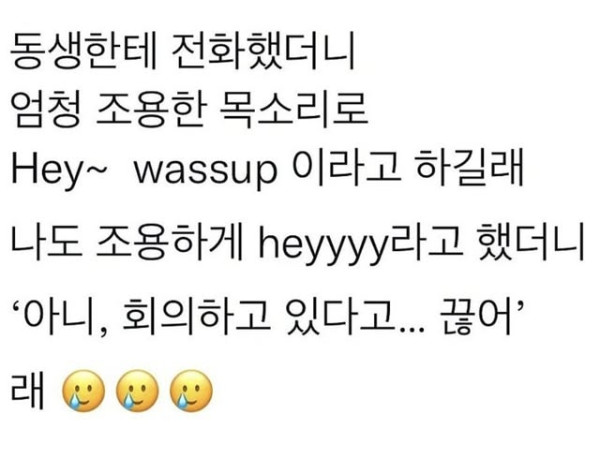 동생한테 전화했더니 작성자 정보 GG요 작성 작성일 2026.02.13 12:23 컨텐츠 정보 378 조회 목록 본문 동생한테 전화했더니 관련자료 댓글 0 등록된 댓글이 없습니다. 로그인한 회원만 댓글 등록이 가능합니다. 목록