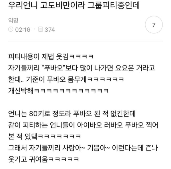 우리언니 비만이라 그룹피티중인데 작성자 정보 원픽강예슬 작성 작성일 2026.02.13 14:49 컨텐츠 정보 180 조회 목록 본문 우리언니 비만이라 그룹피티중인데 관련자료 댓글 0 등록된 댓글이 없습니다. 로그인한 회원만 댓글 등록이 가능합니다. 목록