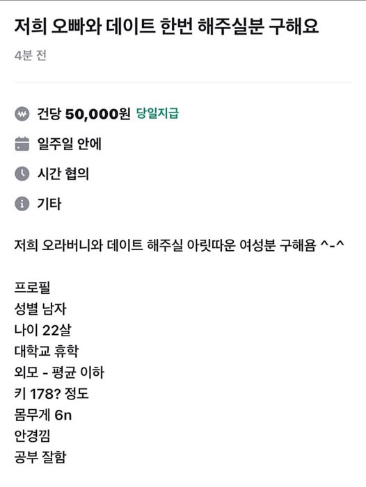 아릿따운 여성 구합니다 작성자 정보 GG요 작성 작성일 2026.02.15 12:02 컨텐츠 정보 14,629 조회 목록 본문 아릿따운 여성 구합니다 관련자료 댓글 0 등록된 댓글이 없습니다. 로그인한 회원만 댓글 등록이 가능합니다. 목록