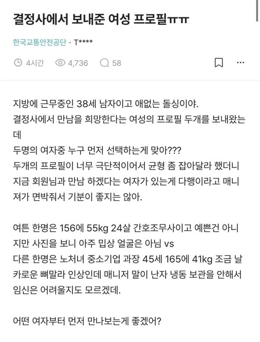어떤 여자부터 만나야 하나? 작성자 정보 GG요 작성 작성일 2026.02.21 12:49 컨텐츠 정보 336 조회 목록 본문 어떤 여자부터 만나야 하나? 관련자료 댓글 0 등록된 댓글이 없습니다. 로그인한 회원만 댓글 등록이 가능합니다. 목록