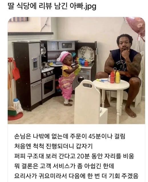 딸 식당에 리뷰남긴 아빠 ㅋㅋ 작성자 정보 GG요 작성 작성일 2026.02.22 12:31 컨텐츠 정보 15,290 조회 목록 본문 딸 식당에 리뷰남긴 아빠 ㅋㅋ 관련자료 댓글 0 등록된 댓글이 없습니다. 로그인한 회원만 댓글 등록이 가능합니다. 목록