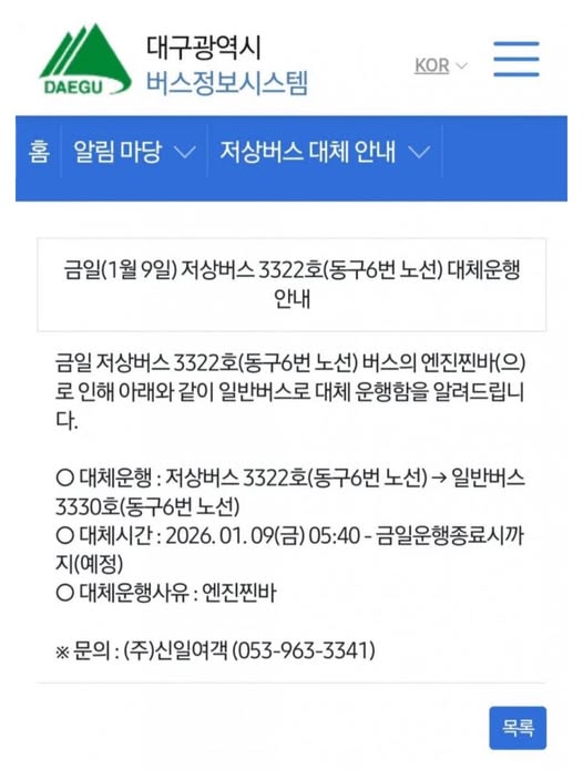 대구 시내버스 대체운행 사유 레전드 작성자 정보 GG요 작성 작성일 2026.02.26 12:31 컨텐츠 정보 9,479 조회 목록 본문 대구 시내버스 대체운행 사유 레전드 관련자료 댓글 0 등록된 댓글이 없습니다. 로그인한 회원만 댓글 등록이 가능합니다. 목록